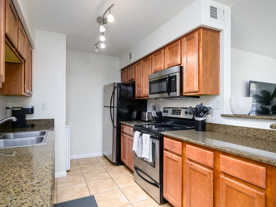 Located in a quiet, gated complex just minutes from Old Town Scottsdale, this two-bedroom condo is an easy home base for work or play. Walk to the Hayden Greenbelt, explore local shops and restaurants, or relax at home with smart TVs, stainless appliances, and comfortable queen beds. Shared building amenities include pool, hot tub, gym, BBQ grills, and tennis court.